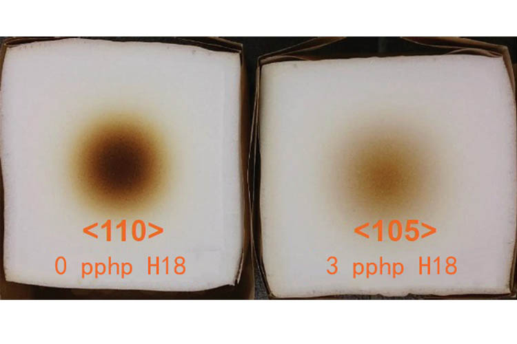與市場(chǎng)上的其他硬化添加劑不同,NT ADD H18可顯著提高硬度,同時(shí)不影響泡沫的孔結(jié)構(gòu)。當(dāng)NT ADD H18添加到配方中時(shí),沒有必要改變TDI或錫的量來(lái)維持開孔結(jié)構(gòu)。使用量為1至5pphp,取決于所需的硬度增加。取決于泡沫密度,配方和生產(chǎn)參數(shù),可以在不顯著改變孔結(jié)構(gòu)的情況下提高35%的硬度。
